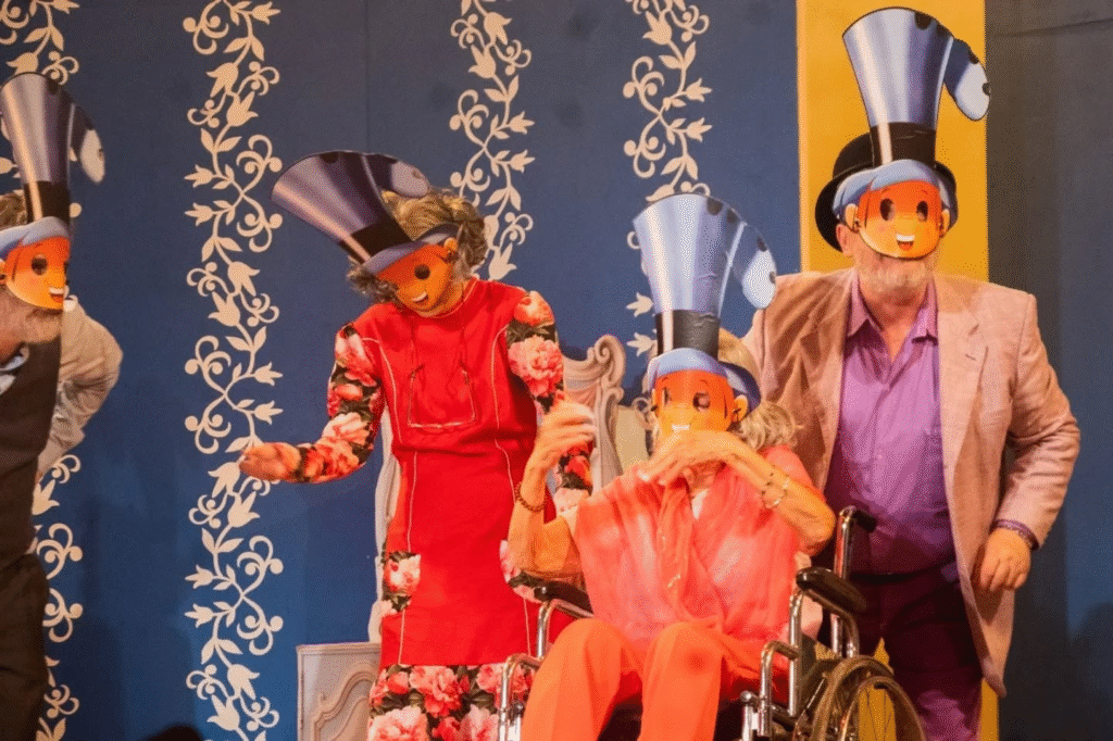 La historia también es simple: ocho viejos que viven juntos, actores y artistas retirados, despiden a uno del grupo que acaba de morir, llamado Chicho, que era el dueño de la casa en la que residen, pero entran en escena los cuatro “malos” de la película, dos hermanos herederos, muy parecidos a Karina y Javier, un gestor legal inmobiliario, y una enfermera management del geriátrico en el que transforman la casa los viejos, convertidos así en inquilinos que deben pagar para ser maltratados y hambreados.